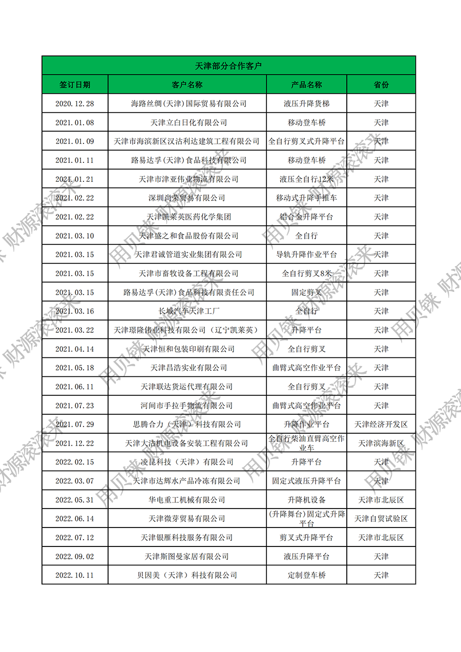 • 天津部分客戶